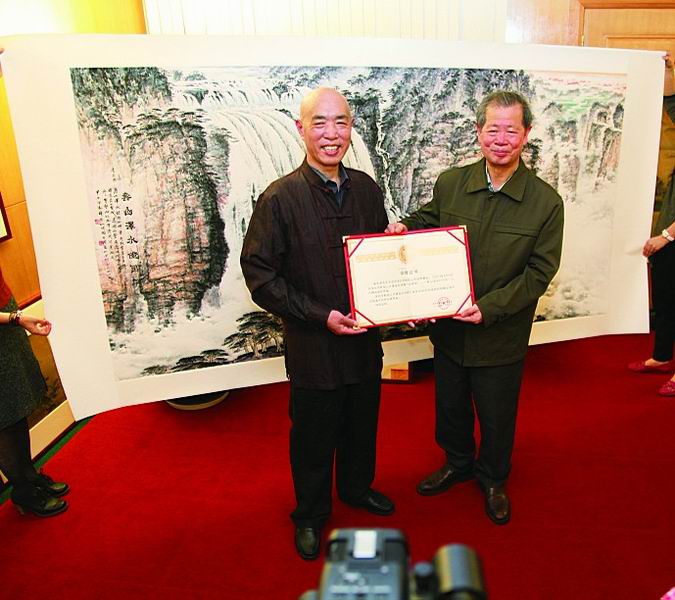 日前,著名画家陶生源将自己创作的二幅八尺山水画作赠送给深圳市新闻人才基金会,希望通过捐赠画作的方式表示对深圳新闻人才培养工作的支持,并且奉献自己对深圳新闻事业的爱心。