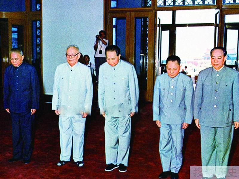 华国锋主席和叶剑英、邓小平、李先念、汪东兴副主席一起瞻仰毛主席纪念堂