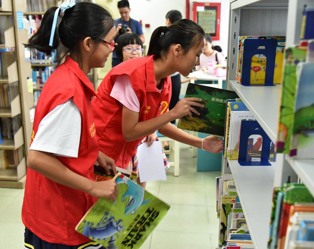 南方大视野2017年7月13日讯(记者 罗珍 特约通讯员 李淑萍、叶章山 深圳报道)“大家知道社会主义核心价值观是什么吗?”“我知道,24个字——富强、民主、文明.....”“我们的图书分类有多少种?为什么不同颜色要放在一起,软皮的和硬皮的书要分别放哪里?”7月12日上午,由深圳市龙岗区横岗街道公共事务中心主办的“成为‘童心圆’志愿者,过个特别的暑假”主题志愿活动在横岗图书馆拉开序幕。来自横岗街道的20余名小义工正在参加简单的图书管理员上岗培训,他们将在这个暑假,作为“童心圆”志愿者,为图书馆分类整理图书、为阅读者提供引导服务、并带动广大阅读者学习和践行社会主义核心价值观。