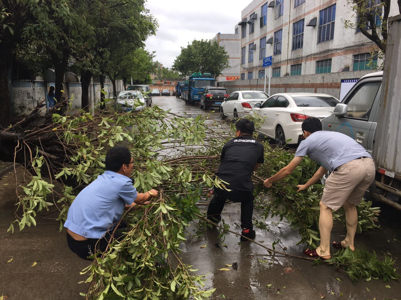 8月23日中午13:10分,强台风登陆期间,龙岗街道杨田路雅胜厂旁边的树木被吹断,折断的树枝挡在路中间,堵塞交通。龙岗街道执法队和龙岗社区城管分队的城管队员迅速对折断的树枝进行清理。