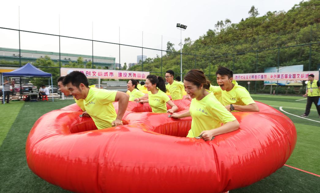 与传统运动会相比,此次运动会将竞技与娱乐结合,着重鼓励职工参与,同事协调合作,特别融入文明城市创建元素。设置了“愤怒小鸟”、“鸿运彩球”、“移舟过河”、“十拿九稳”、“龙行天下”等项目。据了解,这次趣味运动会共12支队伍,来自街道机关、事业单位、各社区工作站工作人员近300名职工参与,竞赛采用积分制,按照每个单项比赛的成绩排列名次获取相应积分,本次竞赛根据最终团体总积分,评出冠军1名、亚军2名、季军3名。