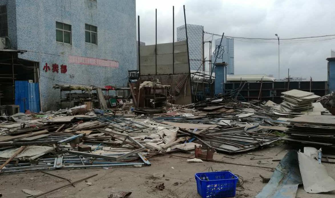 位于南坑社区智富特区旁的工地内,有一处乱搭建板房,板房高三层,每层占地1600平方米,合计建筑面积为4800平方米。该处乱搭建板房紧挨一处厂房,主要用于工地工人居住及办公。由于工地方疏于管理,这里便成了“脏乱差”的代名词。坂田规划土地监察队决定对其进行彻底拆除。9月12日-13日,坂田规划土地监察队联合南坑社区工作站,出动执法人员60人,货车3台,拆除工具一批,对该处的乱搭建进行拆除,拆除面积共计4800平方米。