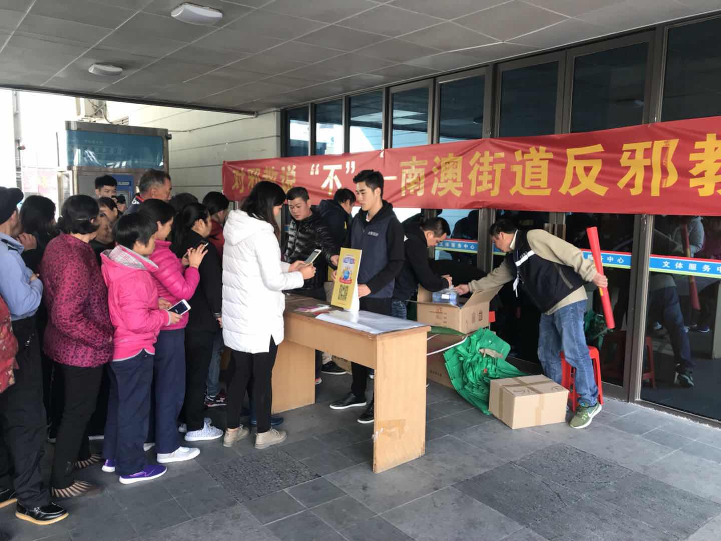 南澳办事处维稳及综治办持续坚持对邪教活动的高压打击态势,并积极进行形式多样的宣传活动,通过组织网上签名、张贴反邪教海报、发放反邪教折页等多种渠道进行宣传,进一步扩大宣传面,防止邪教组织渗透,维护辖区的和谐稳定。
