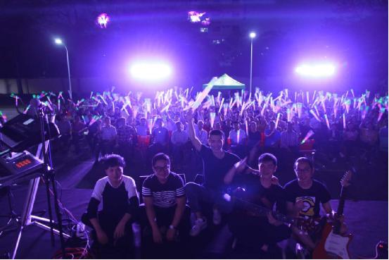 “我的梦想照耀前方,你的信仰点燃勇气,我们一起奋进接力,让我们一起播种希望……”演出在深圳先进微电子科技有限公司高级副总裁罗志雄的一首《新的天地》中拉开帷幕。现场音乐风格多样,融入了民谣、爵士、摇滚以及流行等音乐元素,并以国语、粤语、客家话等多种语言作为演唱方式,呈现出一个轻松、欢快、动人的音乐现场,现场气氛热烈,掌声、尖叫声、呐喊声,响彻全场。