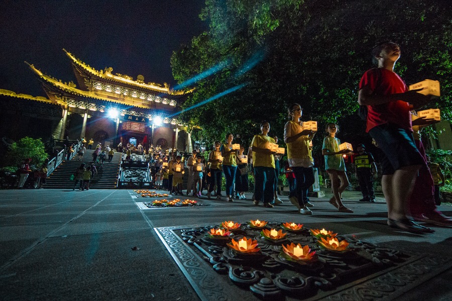 太阳西下,人们从四面八方聚集到东山寺大雄宝殿前,静心、立定、合掌祈福。此次水灯祈福夜在超强台风“山竹”过后举行,更添意义,很多市民为重建家园祈福,为每个参与重建的热心人祈福。“‘山竹’过后,让我找到了更爱深圳的理由,城市主干道快速恢复通行,清理倒伏树木的工作有序进行,无数志愿者走在街头共建我们的家园,我为这座城市祈福,为大鹏新区祈福,希望目前仍在封闭重建的部分景区、景点能够尽快开通,让更多人来欣赏这里的山海之美。”参与水灯祈福的陈女士表示。