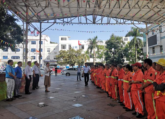 尚区长表示:因挂点平湖街道辅城坳社区党代表,经常过来辅城坳,发现社区环境越来越好。干净整洁的环境跟环卫工人高温酷暑下清扫保洁分不开,环卫工作很辛苦,希望大家在清扫时注意安全,保重身体,最后祝大家节日快乐!