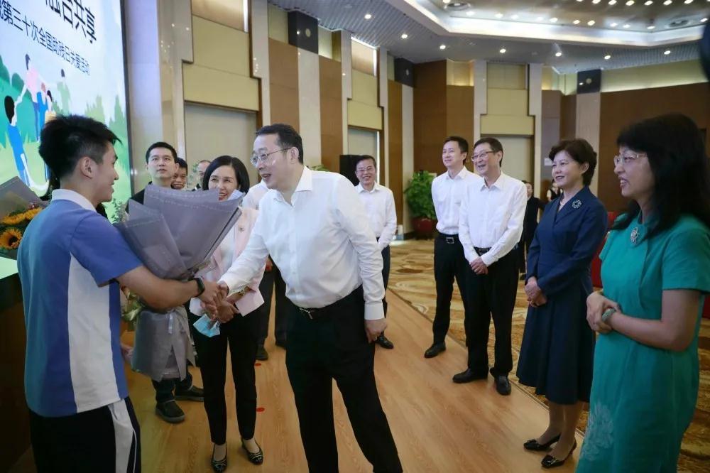 ▲ 交流过程中,在了解到助残先进人士代表罗青,年仅18岁,就已经拥有11年志愿者经验后,王强连续说了三个“谢谢”,为这名年轻的助残志愿者点赞。