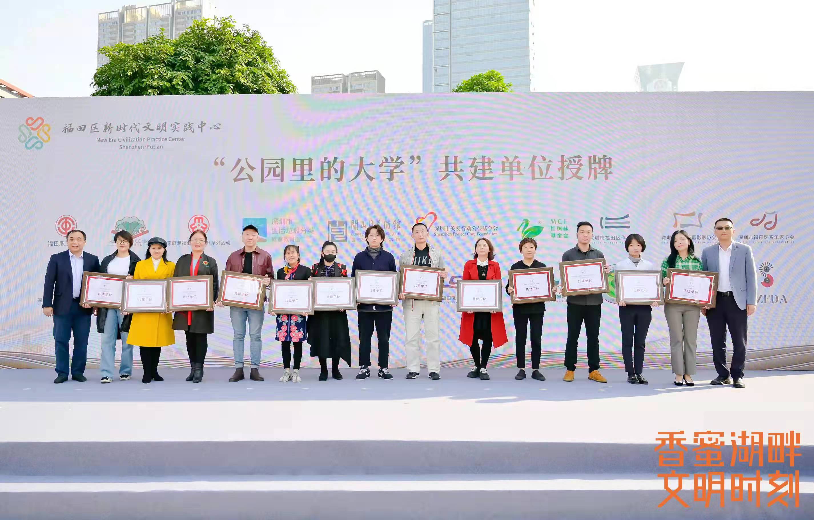 文明实践,以实践促文明,以文明润心田。福田区新时代文明实践中心将强化“研发中心、孵化中心、培训中心、示范中心”四大定位,整合各方力量资源,盘活存量、用好增量,探路先行,争当新时代文明实践“领跑者”。立足现有基础,将中心阵地与香蜜公园有机结合,联动社会资源,实现共建共享,打造“公园里的大学”品牌实践活动,这也是国内第一所设在公园里的大学,“大学”课程涵盖文化、艺术、科技、职业技能、心理健康等方方面面、应有尽有。12月18日,这所“公园里的大学”首堂福田文明学院大师课正式开讲,课程内容是由深圳市关山月美术馆馆长陈湘波带来的讲座《美术馆与城市人文精神的塑造》。
