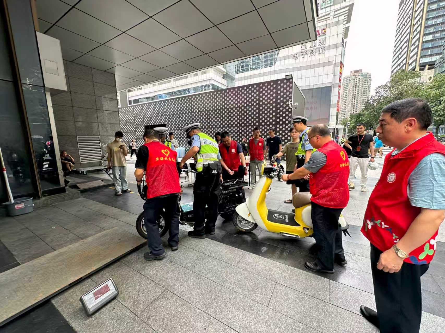 提质升级,全区首创“华强北街道交安便民服务站”。华强北街道采取“1+4”(1个固定点+4个流动点)模式开展电动自行车“一站式”上牌服务,根据预约量,随时变换流动点位,切实满足市民上牌咨询及服务需求,全年完成上牌3000余辆。“五选一”创新电动自行车监管,通过现场发朋友圈集赞、执勤体验、观看视频、抄写交通法律法规、派发宣传资料的形式,累计劝导4000余人次,发挥出违法处罚、教育劝导和文明宣传三重社会效应。街道电动自行车综合治理工作先后接受国家公安部交管局、省公安厅交管局及市公安局交警局等单位领导带队视察检查,得到上级部门高度肯定和赞扬,获评福田区年度“交安工作优秀街道”。