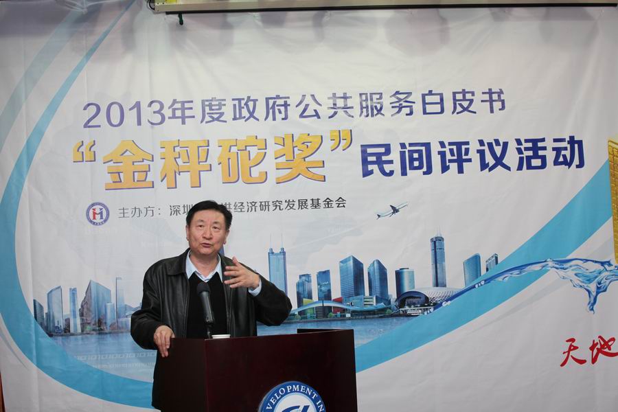 深圳市马洪经济研究发展基金会理事长、《南方大视野》社长李罗力在致辞中讲到:最近这几年,每年年初深圳政府各部门都向社会发布白皮书,承诺本年度该部门要为社会公共服务的事项,这是一件好事。但是,这些部门究竟做了没有,做得合格吗,社会公众并不知晓,社会公众对他们没有进行监督和检查。因此,我们发起这个活动,就是为了弥补这个不足,这实际上是在帮助政府更好地完成社会承诺,更好地建立社会能力,更好地发挥政府公共服务的作用,提高政府公共服务的质量和效率,同时也是落实习总书记要求政府要进一步密切联系群众的精神,通过扩大社会公众的知情权、参与权、表达权和监督权,来推动社会民主法制的进步。我们搞这个活动还有一个帮助作用,那就是有助于白皮书的准确定位。因为白皮书的社会承诺事项就要兑现的,因此,今后白皮书的内容首先要把最关切民众利益,最急需解决的民生事项优先列入白皮书,同时,有些事项目前还不具备解决的条件或者只是政府内部的事务,就不宜写入白皮书向社会承诺,否则会影响白皮书完成的效率和质量。