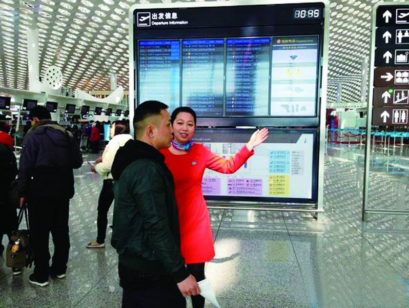 2014年春运时深圳机场转场后的第一个春运,新航站楼每天都有上十万人进出。为了更好的服务旅客,在美轮美奂的“大飞鱼”,深圳机场设置了集问讯、引导、安抚、特殊旅客帮助等功能为一体的“服务大使”岗,成为春运中的一道别样风景线。