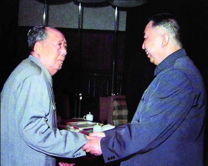 ▲ 1976年,毛泽东主席和中共中央第一副主席,国务院总理华国锋同志亲切握手
