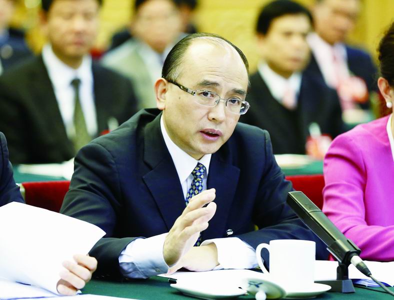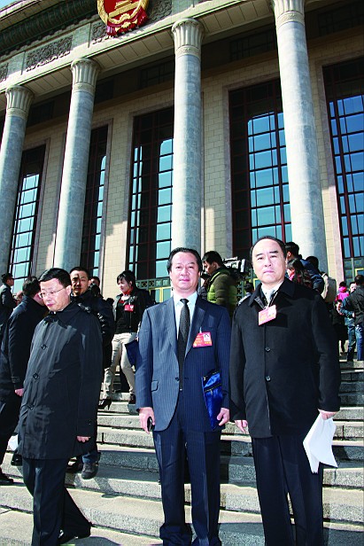 ▲ 深圳市人大常委会主任白天(右)在人民大会堂